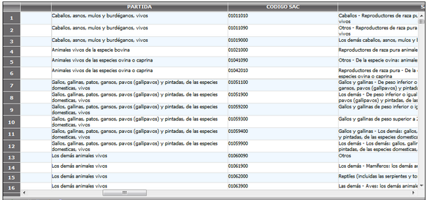 Se pueden actualizar los listados en las variables de Origen Datos, Año, Mes, País, Sección, Capítulo, Partida, SAC, NPH , que sirven a su vez como parámetros de búsqueda para la consulta.